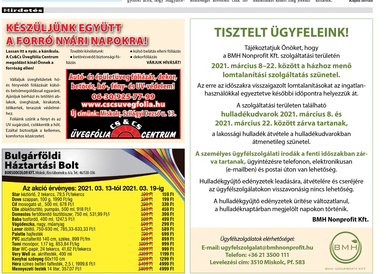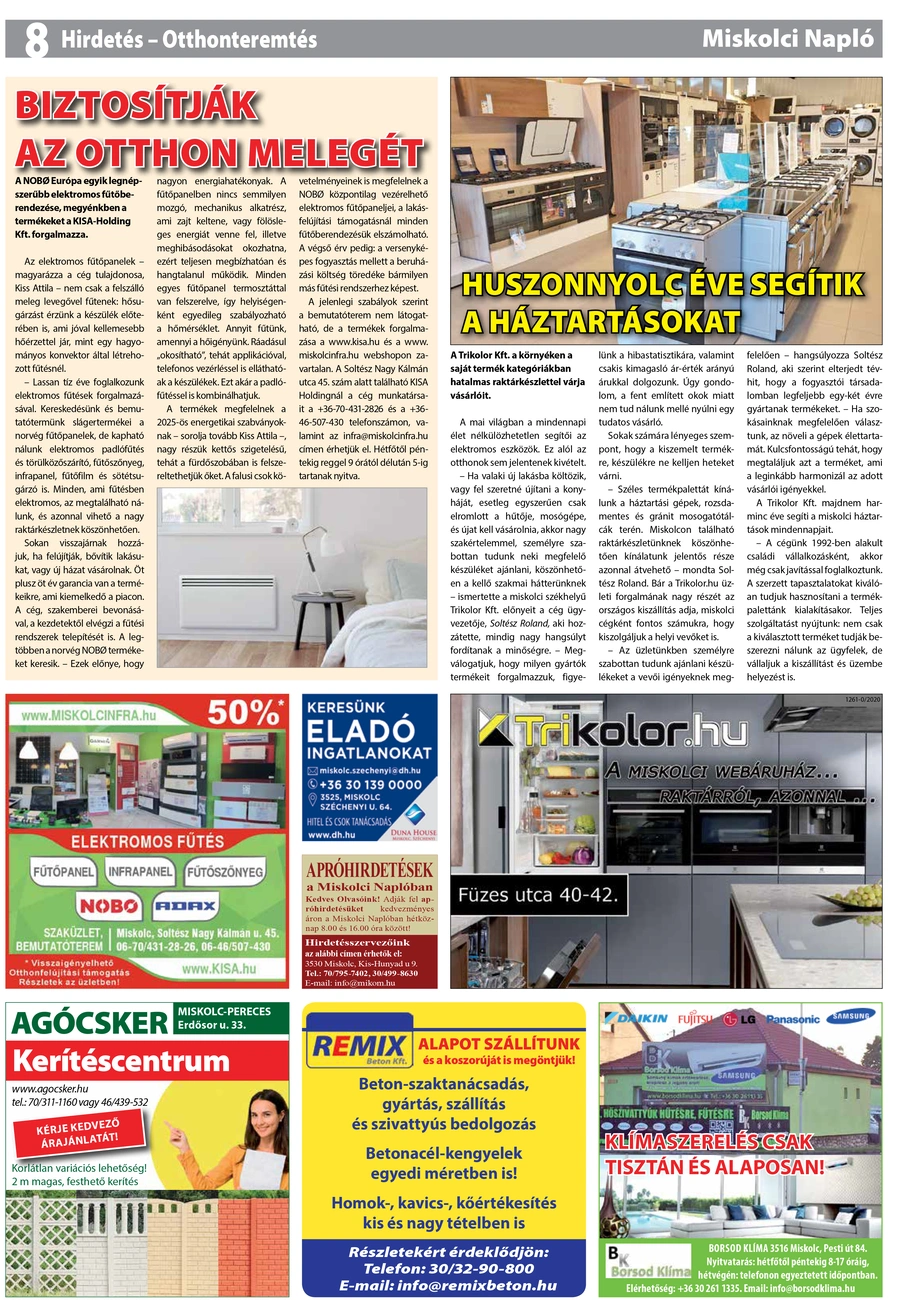 A jelenlegi szabályok szerint a bemutatóterem nem látogatható, de a termékek forgalmazása a www.kisa.hu és a www.miskolcinfra.hu webshopon zavartalan. A Soltész Nagy Kálmán utca 45. szám alatt található KISA Holdingnál a cég munkatársait a +36-70-431-2826 és a +36-46-507-430 telefonszámon, valamint az infra@miskolcinfra.hu címen érhetjük el. Hétfőtől péntekig reggel 9 órától délután 5-ig tartanak nyitva.