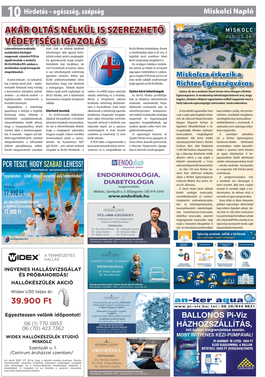Egészség, szépség oldal a Miskolci Naplóban.
