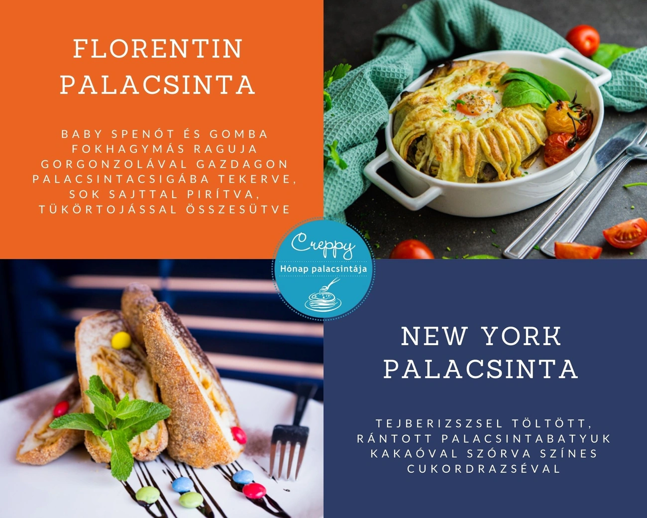 A debütáló esten 15% kedvezménnyel kóstolhatók meg a Creppy legújabb palacsinta csodái, a Florentin és New York névre keresztelt elegáns fogások!