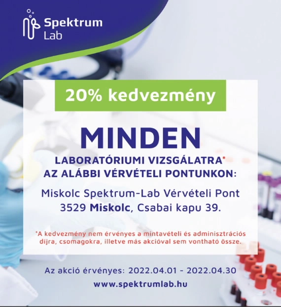 Április végéig minden laborvizsgálatra húsz százalék kedvezményt biztosítanak miskolci vérvételi pontjukon. Kerülje el a sorban állást és a várakozást! Kérjen időpontot még ma! Siessen, mert az akció csak április végéig tart!