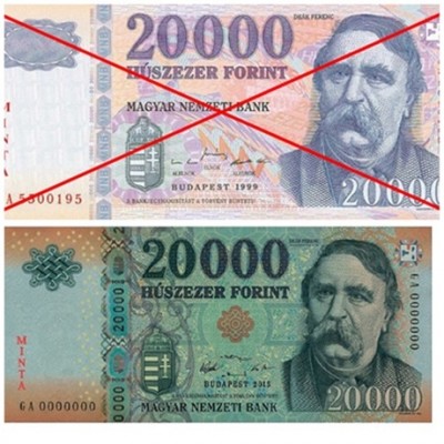 A Magyar Nemzeti Bank 2017. december 31-én vonta be a készpénzforgalomból a régi – 2015 előtt kibocsátott – 20 000 forintos bankjegyeket.