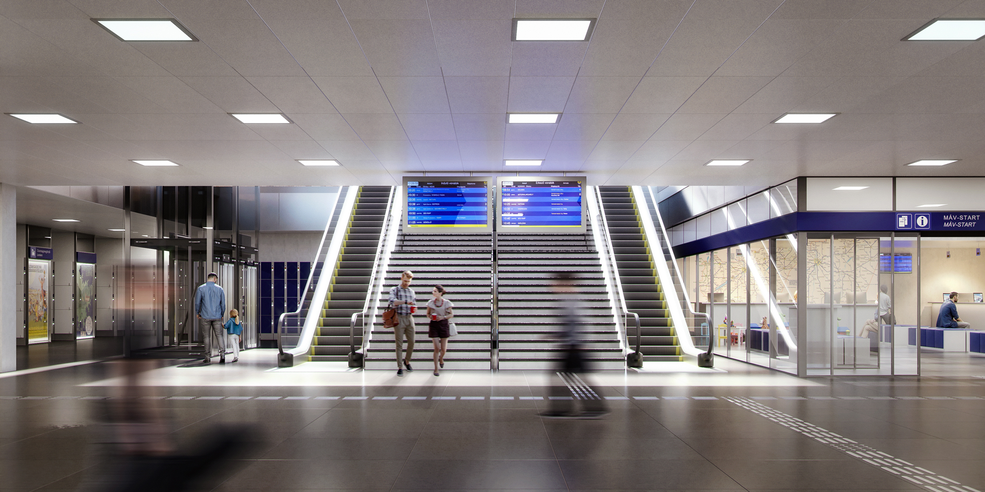 Részletezik, hogy az akadálymentesített utascentrum a peronszint alatt, a jelenlegi belföldi pénztárak és a pénztárak előtti terület teljes átépítésével valósul meg több mint 1542 négyzetméteren.