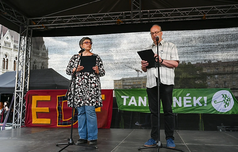 A státusztörvény parlamenti vitájával egyidőben a Kossuth téren tüntet a sokat kritizált törvényjavaslat ellen a Tanítanék Mozgalom és az Egységes Diákfront. A Telex helyszíni tudósítója szerint közel ezren gyűltek össze a 17 órára meghirdetett tüntetés kezdetére, de nagyjából 30-45 perc alatt több ezresre duzzadt a tömeg. „Tedd tönkre, ami tönkretesz” – volt olvasható az egyik nagyobb transzparensen.