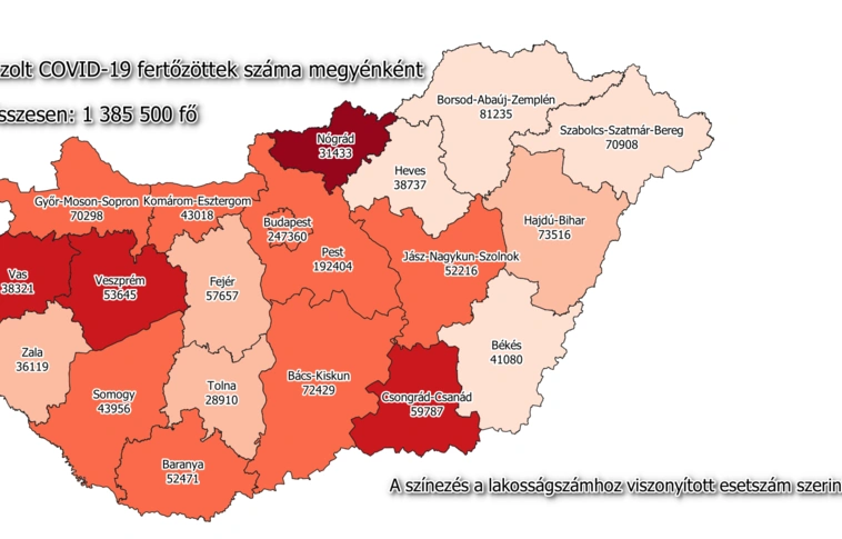 Magyarországon a beoltottak száma 6 325 143, közülük 6 069 677-en a második, 3 437 335-en pedig már a megerősítő, harmadik oltást is megkapták. 15 526 új fertőzöttet igazoltak, ezzel a járvány kezdete óta 1 385 500-ra nőtt az azonosított fertőzöttek száma. Elhunyt 71, többségében idős, krónikus beteg, így az elhunytak száma 40 757-re emelkedett - közölte a koronavirus.gov.hu csütörtökön.