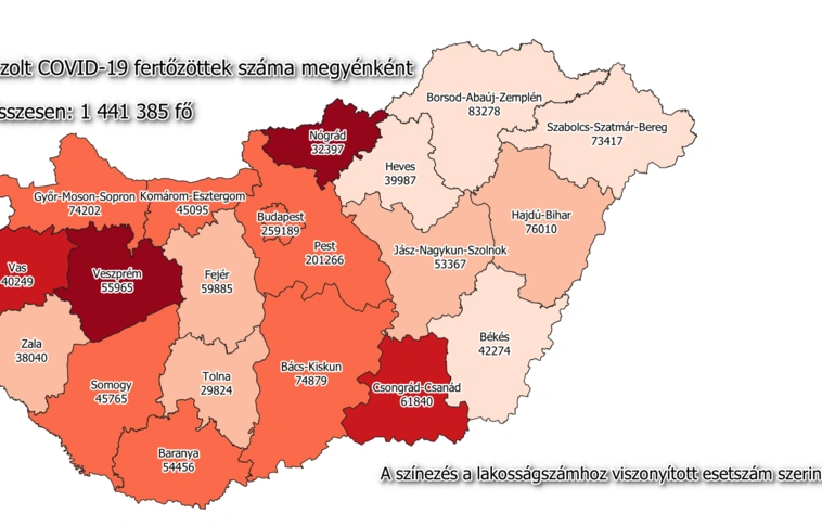 Magyarországon a beoltottak száma 6 342 496, közülük 6 080 592-en a második, 3 554 502-en pedig már a megerősítő harmadik oltást is megkapták. Az elmúlt három napban 39 928 új fertőzöttet igazoltak, ezzel a járvány kezdete óta 1 441 385-re nőtt az azonosított fertőzöttek száma. Az elmúlt három napban meghalt 122, többségében idős, krónikus beteg, így az elhunytak száma 40 944-re emelkedett - közölte a hétvégi összesített adatokat a koronavirus.gov.hu hétfőn.