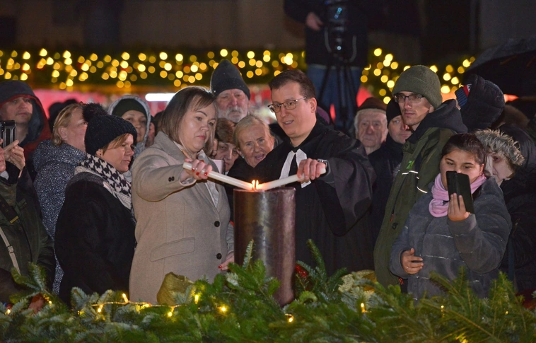 Fellobbant az első adventi gyertya a Szent István téren