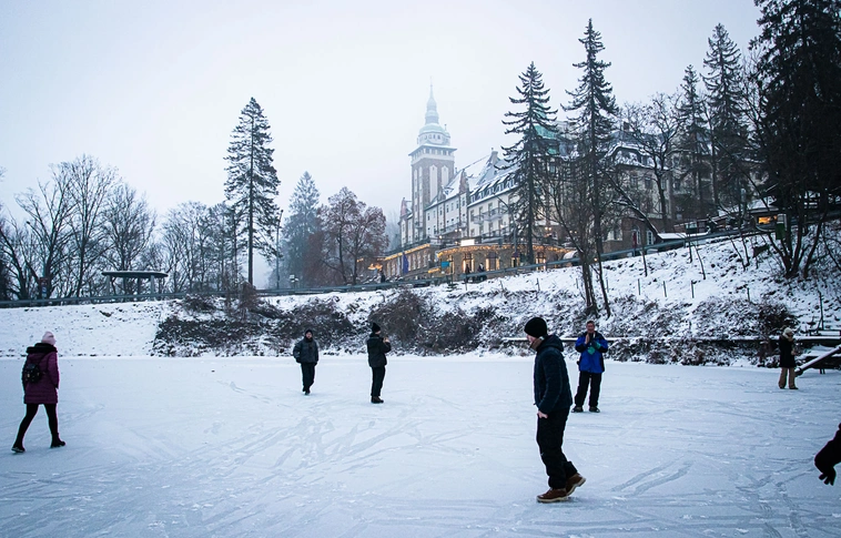 Bár a Hámori-tavat fedő jégréteg nem csak a tekintet vonzza, rámerészkedni semmi esetre sem szabad.