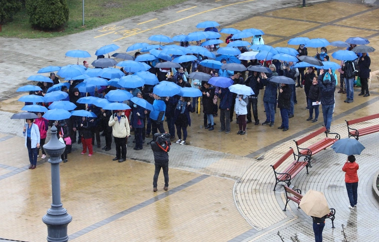 Flashmobbal hívják fel a figyelmet az autizmussal élőkre hétfőn a miskolci belvárosban.