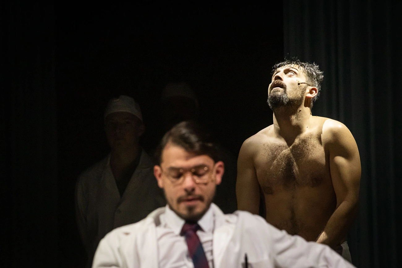Kezdjük azzal, hogy meglátásom szerint nem voltak gyenge alakítások. Olyanok akadtak legfeljebb, amelyek erőtlenebbnek tűntek a többiekhez képest. A Mester és Margarita közötti szerelmi feszültség talán kevés volt a két szereplő fundamentumát meghatározó kapocsnak - bár ez az alapműben sem volt emlékeim szerint erősebben kidomborítva, szeretik egymást mindhalálig, ennyi, el lett mondva, nem?. Hozzátéve, a főként rendezőként működő Keszég László szerintem kifejezetten jól hozta a karakterét. Azonban nehéz teret nyerni egy ilyen darabban Rózsa Krisztián bimbózó őrülete, Salat Lehel Demeter Szilárdjának Berliozának önhitt ateizmusa, Simon Zoltán – színpadon ritkán látott, kiváló mimikával verselő – Rjuhinja és Gáspár Tibor Pilátusa mellett, aki nem mossa kezeit, hanem időszámításkori Rambóként visszavág. Az Afraniust és Sztravinszkij doktort meglepő érettséggel játszó Béres Bencét is érdemes figyelni. Az igazi borzongást azonban az ördögi négyes fogat és Farkas Sándor Jesuája hozta - utóbbi egyszerűen kiváló volt, a kihallgatás jelenete számomra az a pont a darabban, ami meggyőzött: itt mot tényleg figyelni kell.
