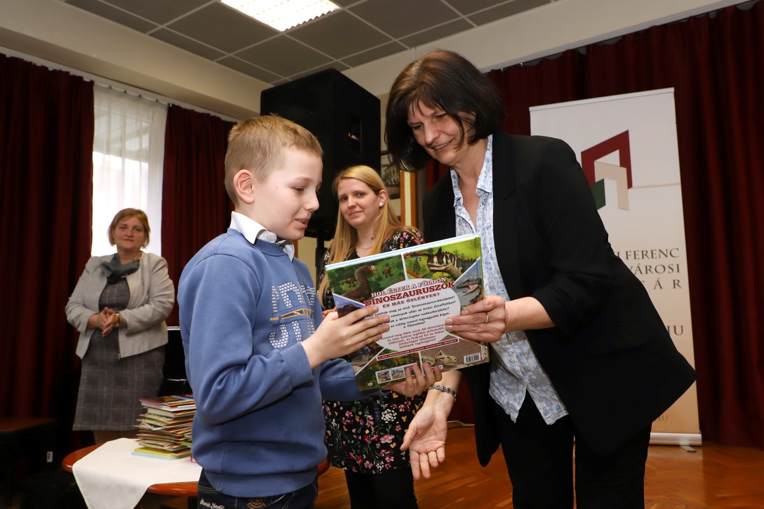 A tárlat megnyitása előtt a könyvtár előadótermébe várták a diákokat és szüleiket, itt adták át számukra az elismeréssel járó oklevelet és könyvjutalmat. Az eseményen előbb Varga Gábor könyvtárigazgató szólt, aki köszönetet mondott minden pályázónak a beérkezett munkáért.