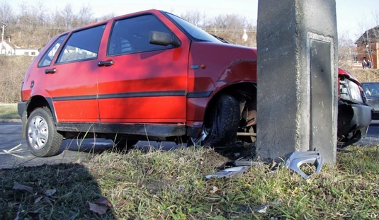 A villanyoszlopnak csapódott a Fiat
