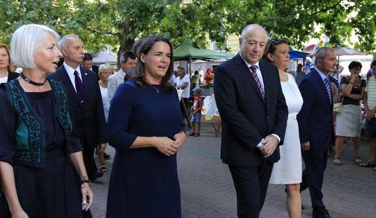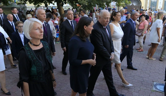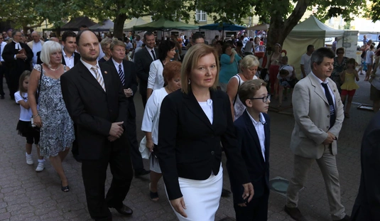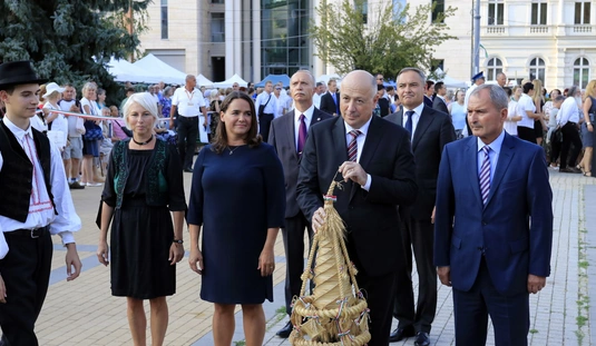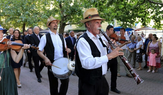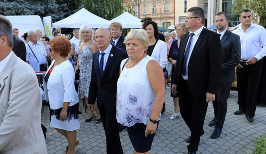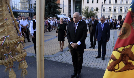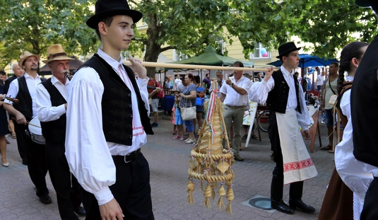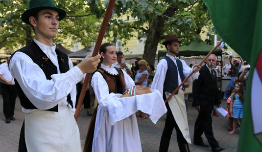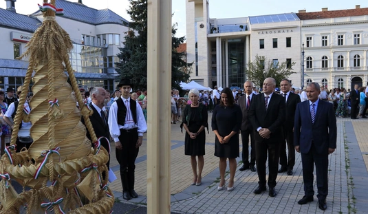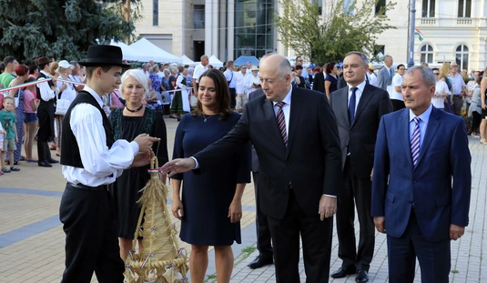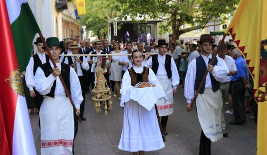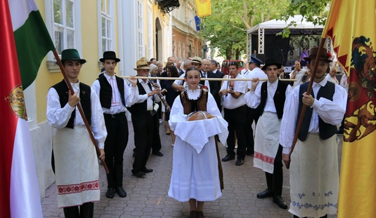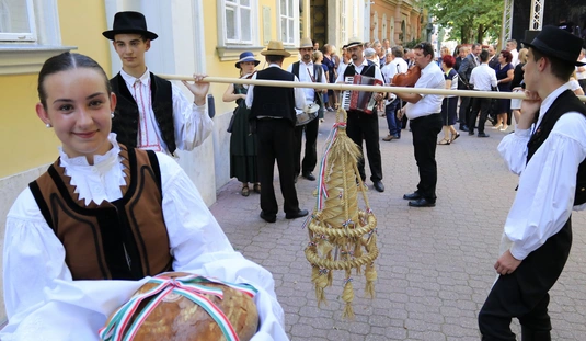 Ünnepei menet aratókoszorúval a Szent István térre