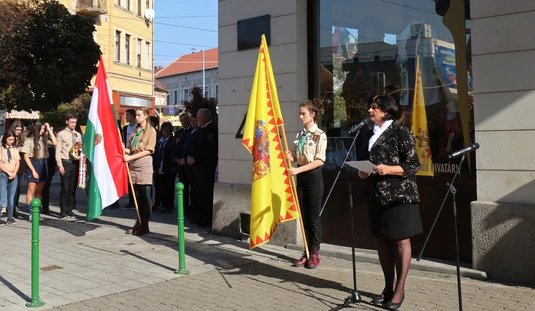 Koszorúzás Misley Emese emléktáblájánál