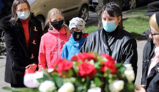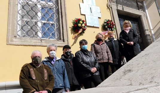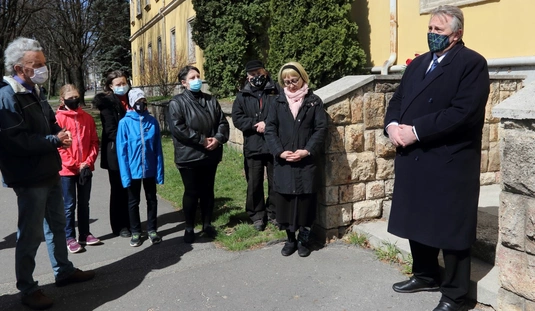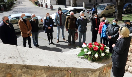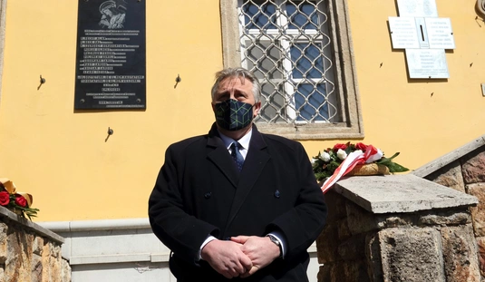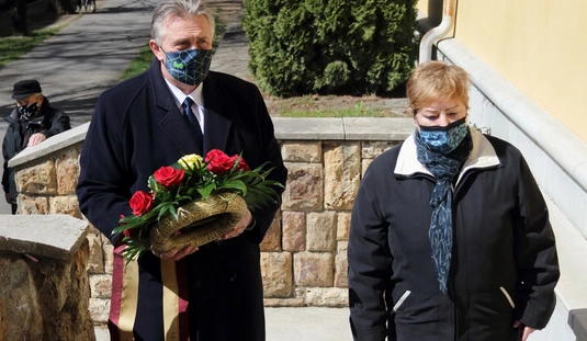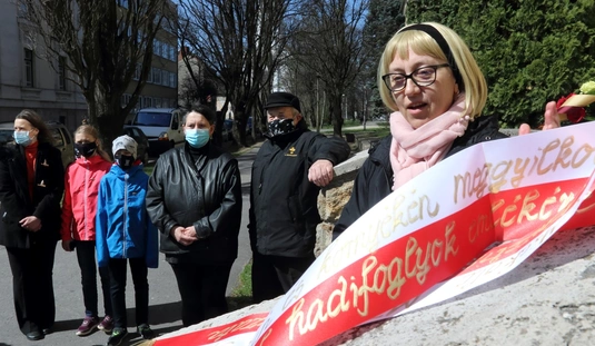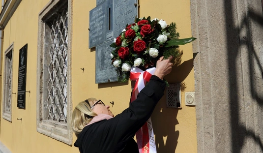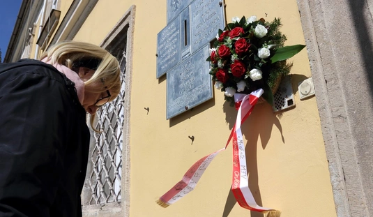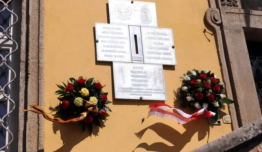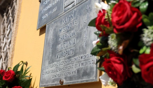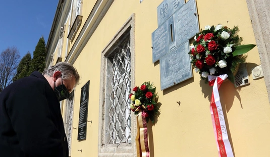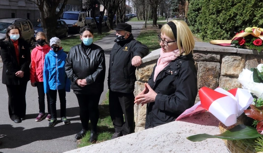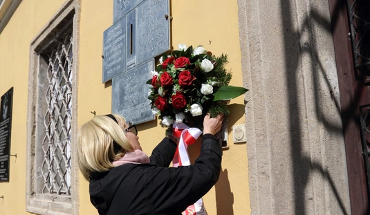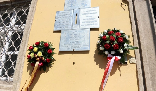 Koszorúzás a Katyn-i emléktáblánál