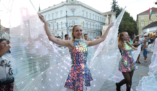Felvonulás és Tündöklő fényjáték a Hősök terén