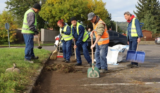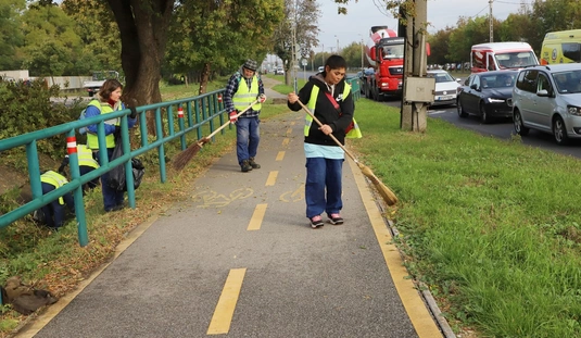 Takarítás, parkolási útburkolati jelek festése a Szentpéteri kapuban