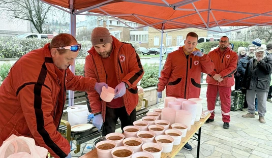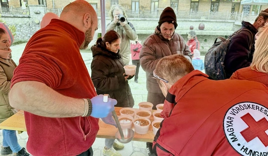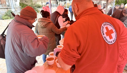 Ételosztás a Szinva teraszon