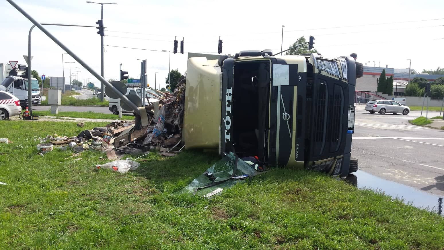Csütörtökön fél 11 után pár perccel egy hulladékot (nem veszélyes hulladékot) szállító kamion borult az oldalára a Repülőtéri és a Zsigmondy út kereszteződésében. Mint azt Varga Rudolftól megtudtuk, a forgalmat rendőr tereli el erről az útszakaszról. – A 306-os útról a Várközi Lajos utcára terelték a forgalmat.