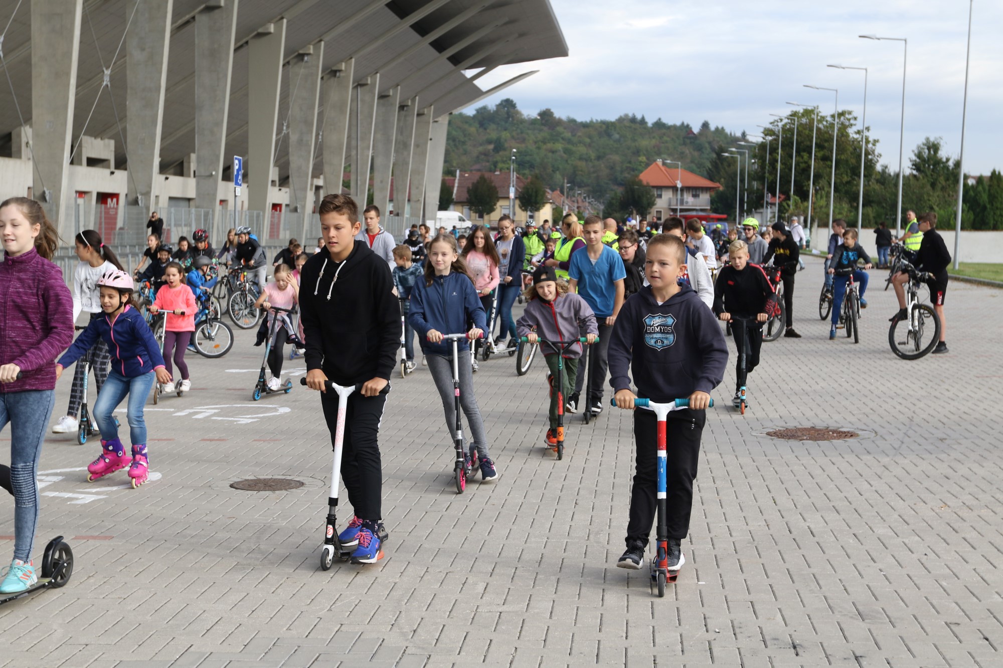 Hatalmas lendülettel futottak be a gyerekek a DVTK stadionhoz korán reggel. A több száz diósgyőri általános iskolás egyszerre indult el, hogy a városrészen keresztül biciklivel, rollerrel, vagy görkorival jusson el a suliig.