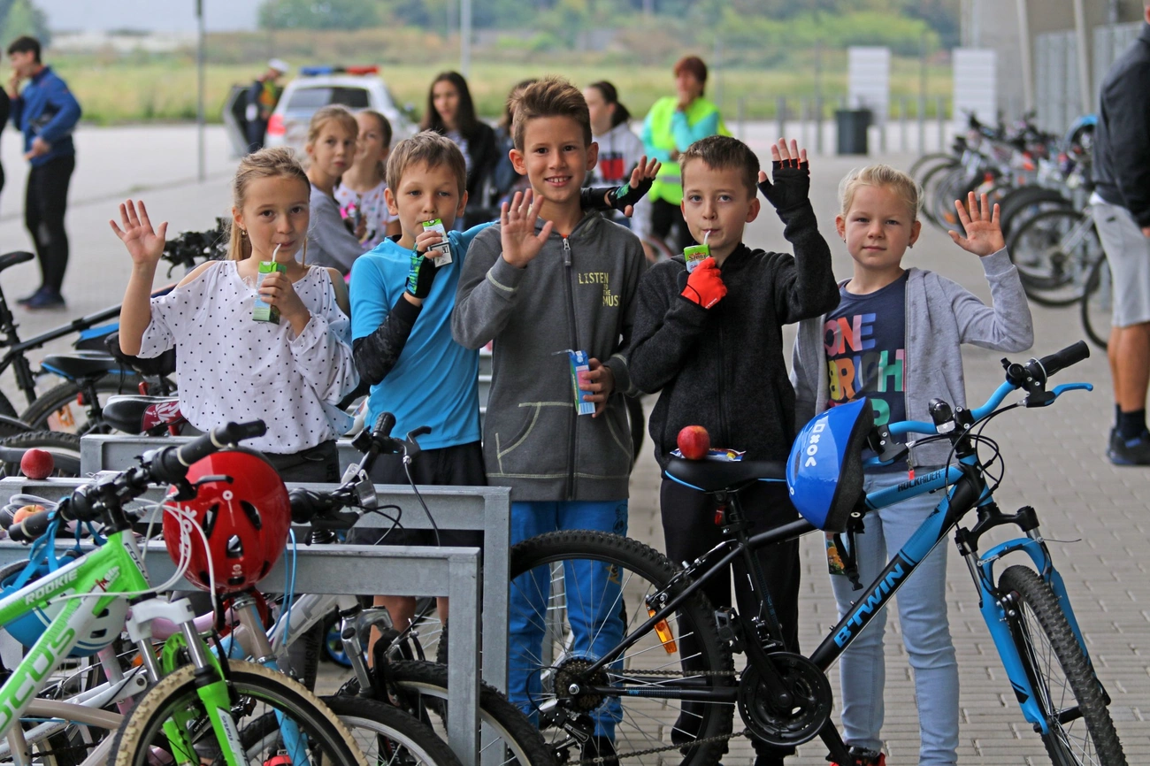 A „Tekerj a suliba" kampány egész héten tart –, ha a gyerekek minden nap így érkeznek az iskolába, a hét végén jutalmat kapnak.