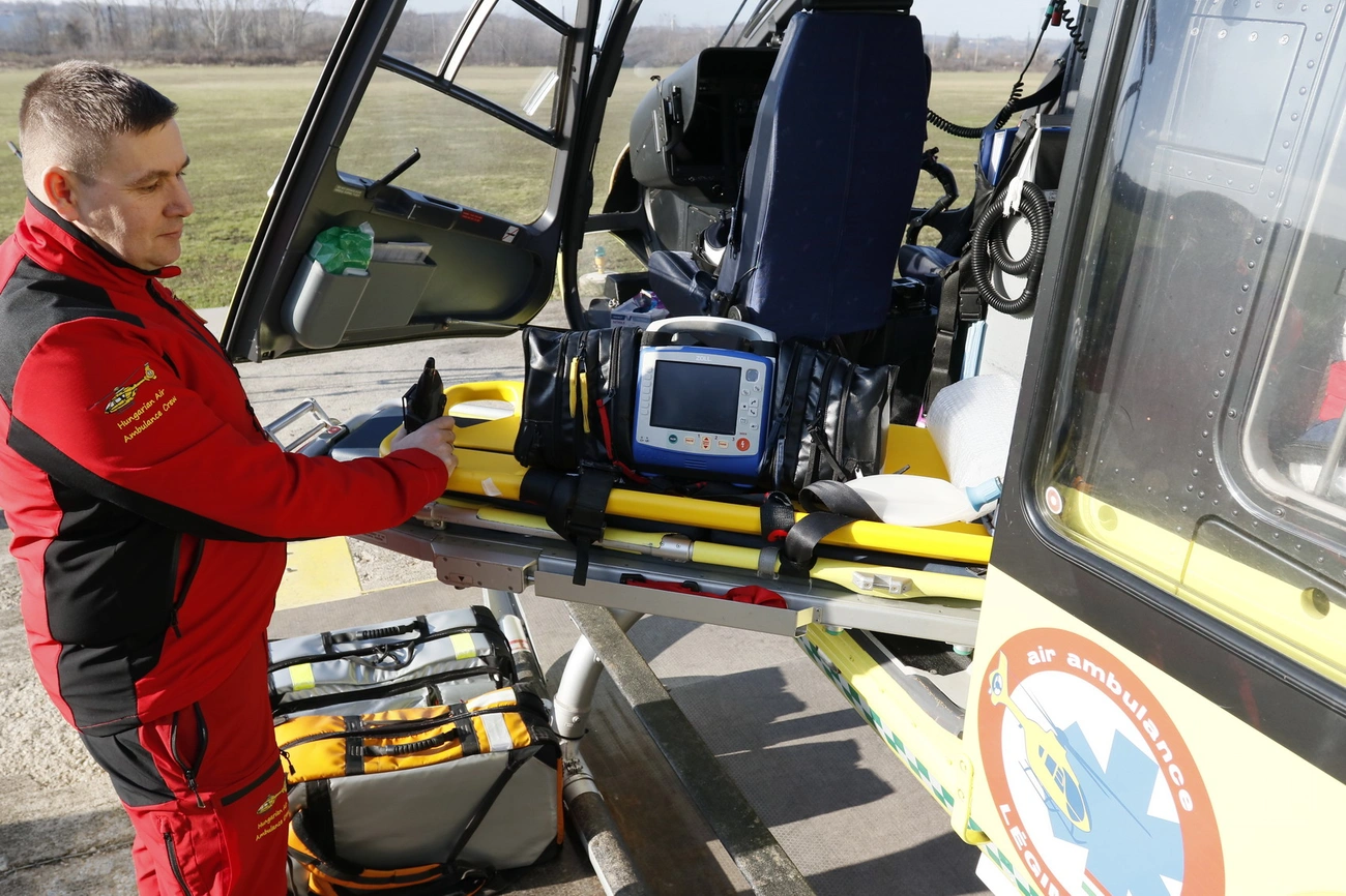 A helikopter tartozékai közé tartoznak az új egészségügyi felszerelések: betegőrző monitor, defibrillátor, lélegeztető gép, gyógyszeradagoló.