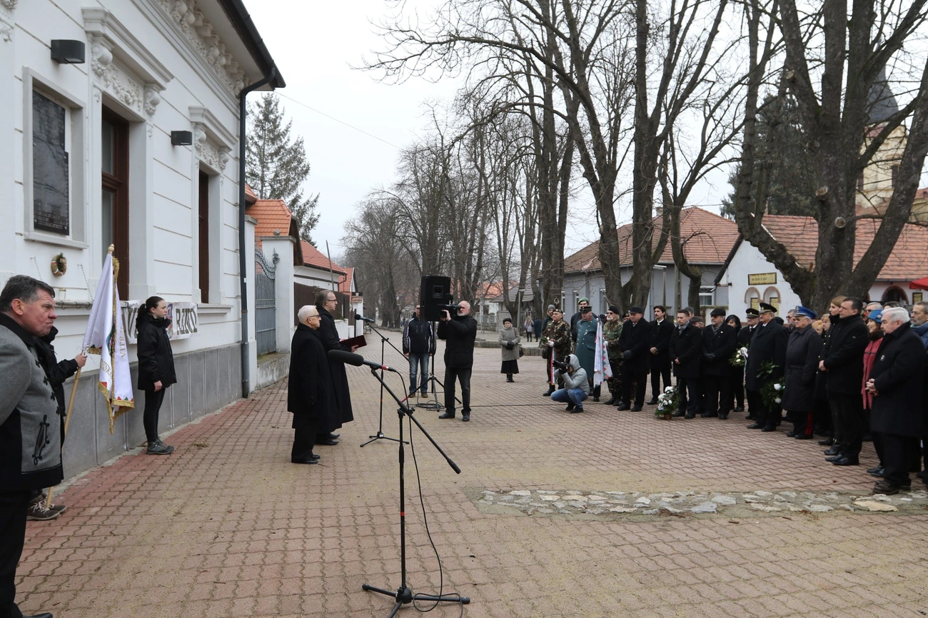 Vitéz Miklós Árpád a tábla elhelyezésének körülményeiről szólt. Úgy fogalmazott, a szörnyű események után, a „gyalázatot” követően csak 50 évvel kerülhetett ki egy ilyen tábla. – 25 éve emlékezhettünk meg először ezen a helyen – tette hozzá.