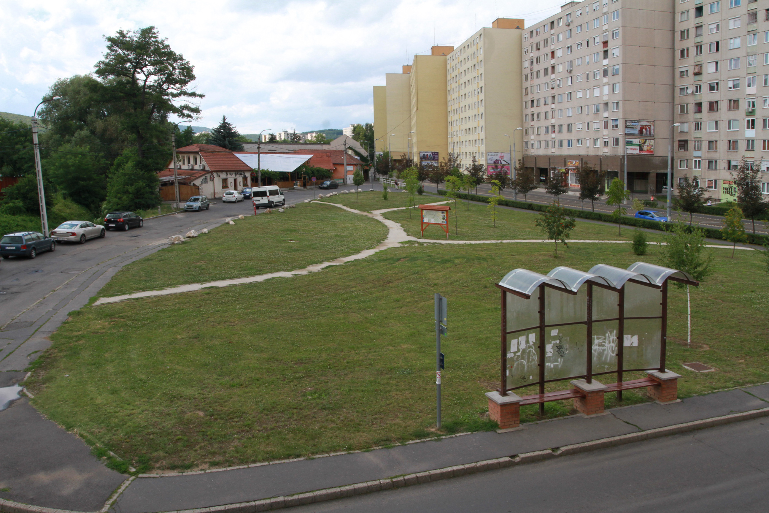 A II. János Pál pápa tér lépcsőzetes süllyesztést kap a Szinva-patak medre felé, így a zöldterület közvetlen kapcsolatba kerül a vízfelülettel. A téren új sétányok kapnak helyet, melyeket kandeláberek, utcabútorok, évelő virágágyások és egyedi fák színesítenek, de egy látványos, burkolatba süllyesztett, nagyobb méretű szökőkút is helyet kap a tér ékeként.