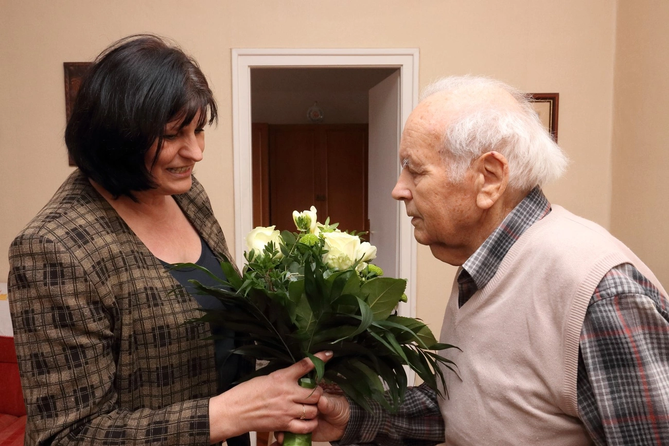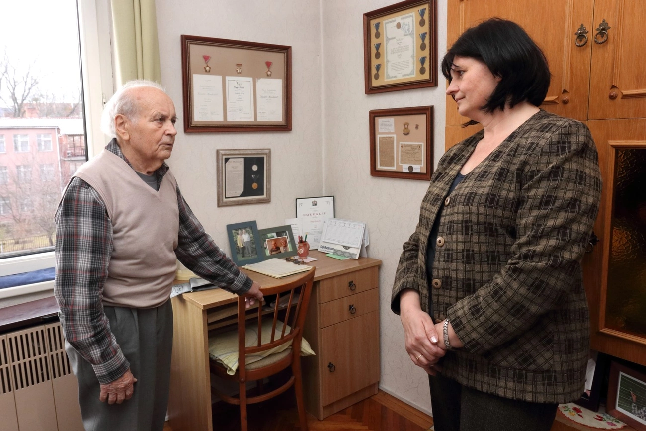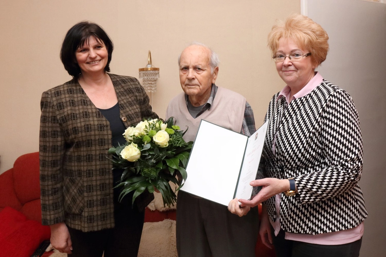 Miskolci lakásában hatvanöt éve él, elsőként költözött be, ma már maga takarítja, elvégez maga körül minden munkát. – Szerencsére a fiaim gyakran meglátogatnak unokáimmal együtt, mert mindannyian itt laknak a közelben. Egyedül vasalni nem szeretek – árulta el Nagy László, akinek lakása patika rendben fogadta Varga Andrea alpolgármestert. Ő köszöntötte ugyanis a város nevében az ünnepeltet egy csokor virággal, egy üveg borral és egy emléklappal.
