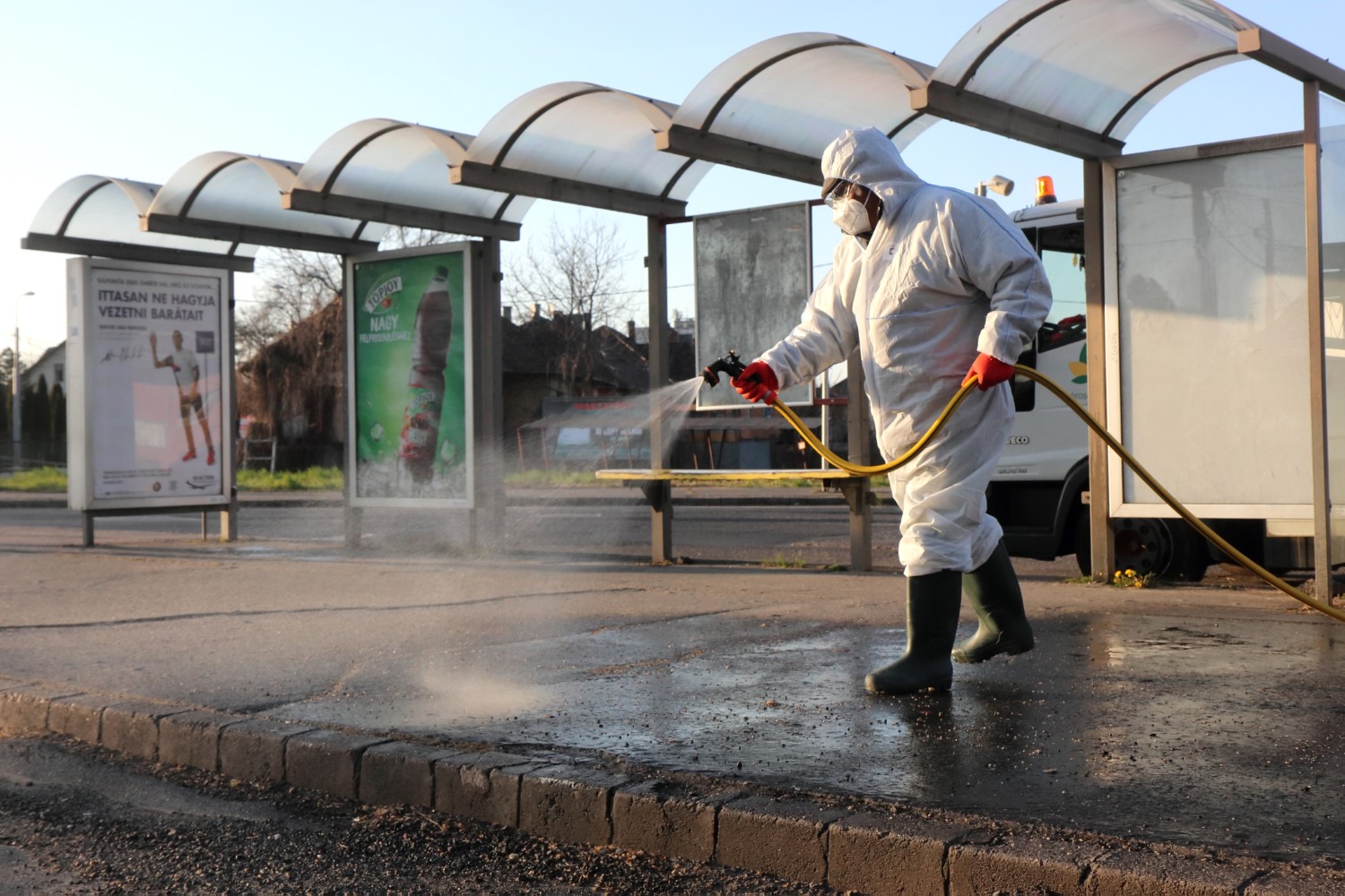 Az első csoportok a Tiszai pályaudvartól és Felső-Majláthról indultak. A Miskolci Városgazda munkatársai a városban található csaknem 400 villamos- és buszmegálló járófelületeit, a peronokat és minden hozzátartozó elemet, így a padokat és a korlátokat is fertőtlenítették.