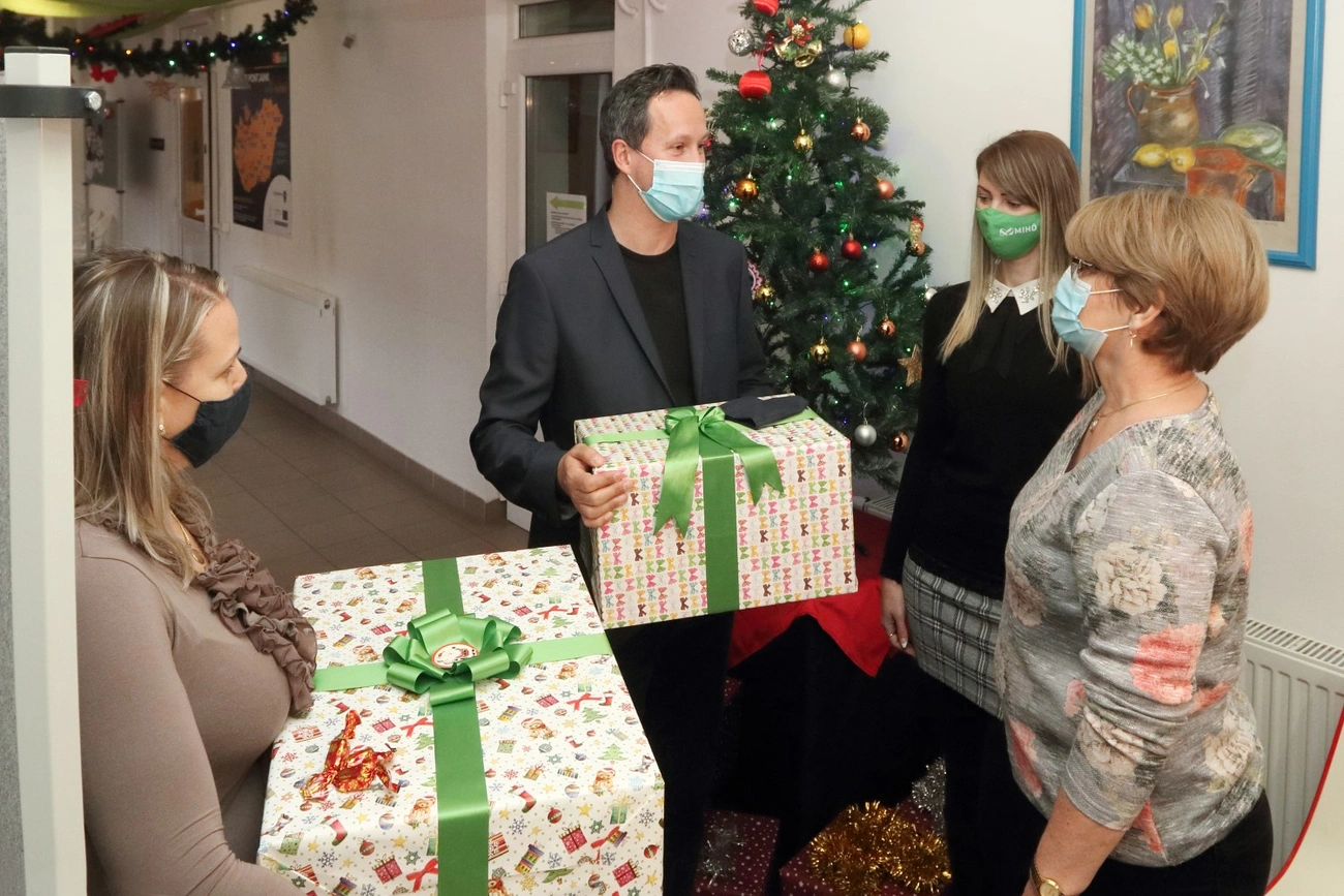 A maszkok mellett szaloncukor is került a szépen becsomagolt dobozokba. Gúr Péter Attila, a MESZEGYI igazgatója szerint jó helye lesz az ajándékoknak.