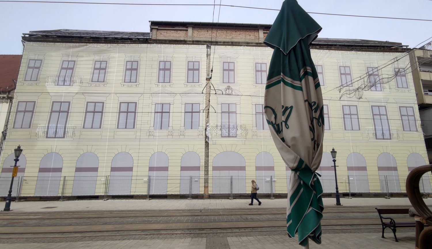A belváros kezdetét jelentő térről indulunk el, hogy utánajárjunk a vélt igazságnak, miszerint alig van élet a megyeszékhely központjában, a városlakók zöme otthon marad, home office-ban dolgozik, aki tud, és mindenki más is kerüli, hogy a köztereken tömegekkel találkozzon: jobb az óvatosság az idestova egy esztendős koronavírus-fenyegetettség hullámzó állapotában. Nos, tömegekkel nemigen lehet találkozni a Széchenyi utcán, még a legfrekventáltabb pontokon is alig – később, már a Corvin-kereszteződésben látunk egyszerre nyolc gyalogost a zebrán, amennyiben ez „tömegnek” nevezhető. De még csak a városház térnél járunk riportkörutunkon: vajon „tömegnyomor” érzékelhető-e a villamosokon? Az épp a megállóba érkező szerelvényen nem látszik ilyesmi, akad bőven ülőhely, a többség azokon foglal helyet, kevesebben vannak, akik állnak, bár leülhetnének, ez az ablakokon át is kivehető. Mintegy tucatnyian szállnak le- és fel. A közelben pékség, gyrosos, sütibolt, cukrászda, egyik üres, másik zárva, ennyi a változatosság a kereskedelmi látképben. Az élelmiszer-áruház bejáratánál néhány maszkot viselő vásárló mozog kifelé és befelé, az ablakmosó is végzi munkáját, akárcsak valamivel lejjebb, a színházzal szemben egy ház homlokzatfelújításán dolgozók. Messzire harsan az állványról a „Vigyázzatok!” kiáltás, ahogy emelik fel az építőanyagot az emeleti erkélyhez.
