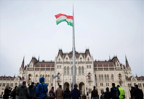 Felvonták a nemzeti lobogót az Országház előtt