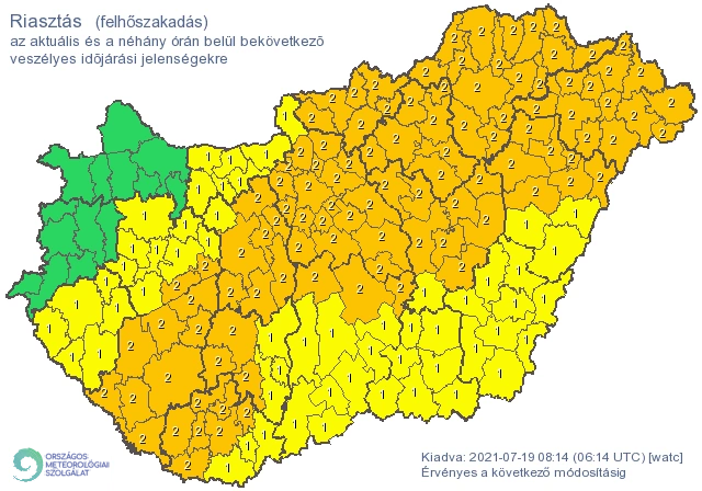 Emellett az egész országra zivatarveszély miatt is elsőfokú figyelmeztetést adtak ki.