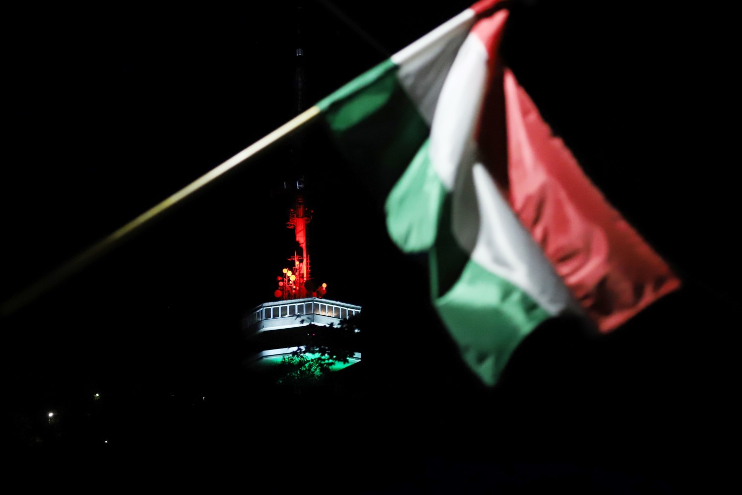 Az 1956-os forradalom és szabadságharc tiszteletére piros-fehér-zöld nemzeti trikolór fényvetítést kapott az Avasi kilátó.