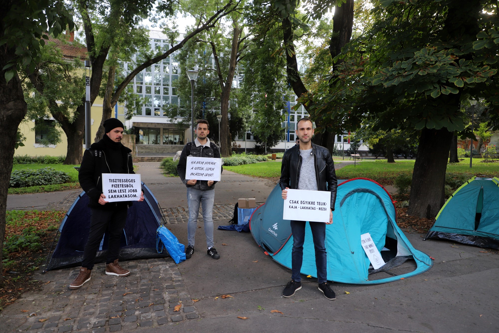 A megyeháza épülete előtt állítottak fel néhány sátrat péntek délután a Societas aktivistái. Az akcióval a fiatalok a lakhatási válság problémáira hívták fel a figyelmet – mondta el lapunknak Bazin Levente, a szervezet elnöke.