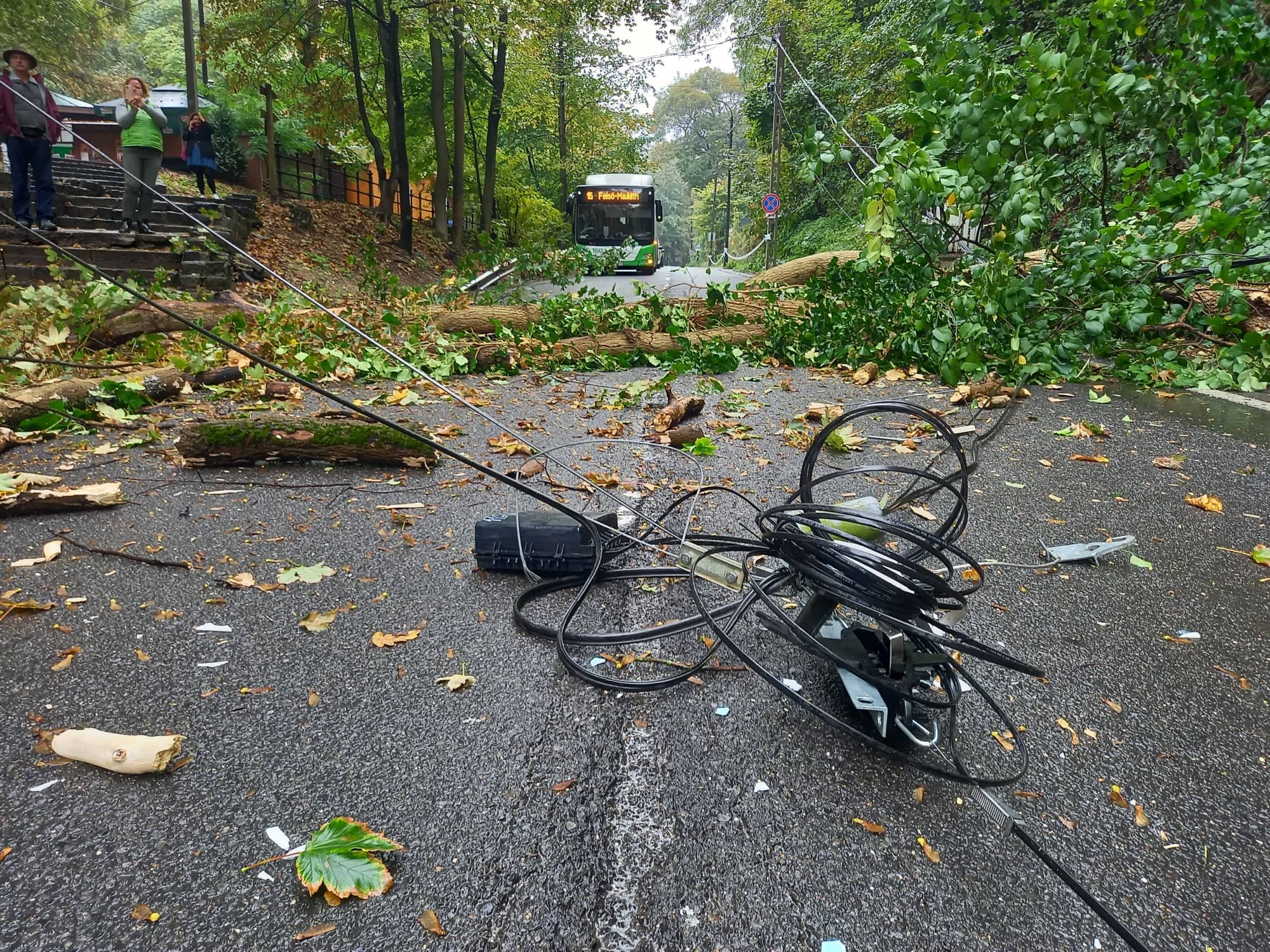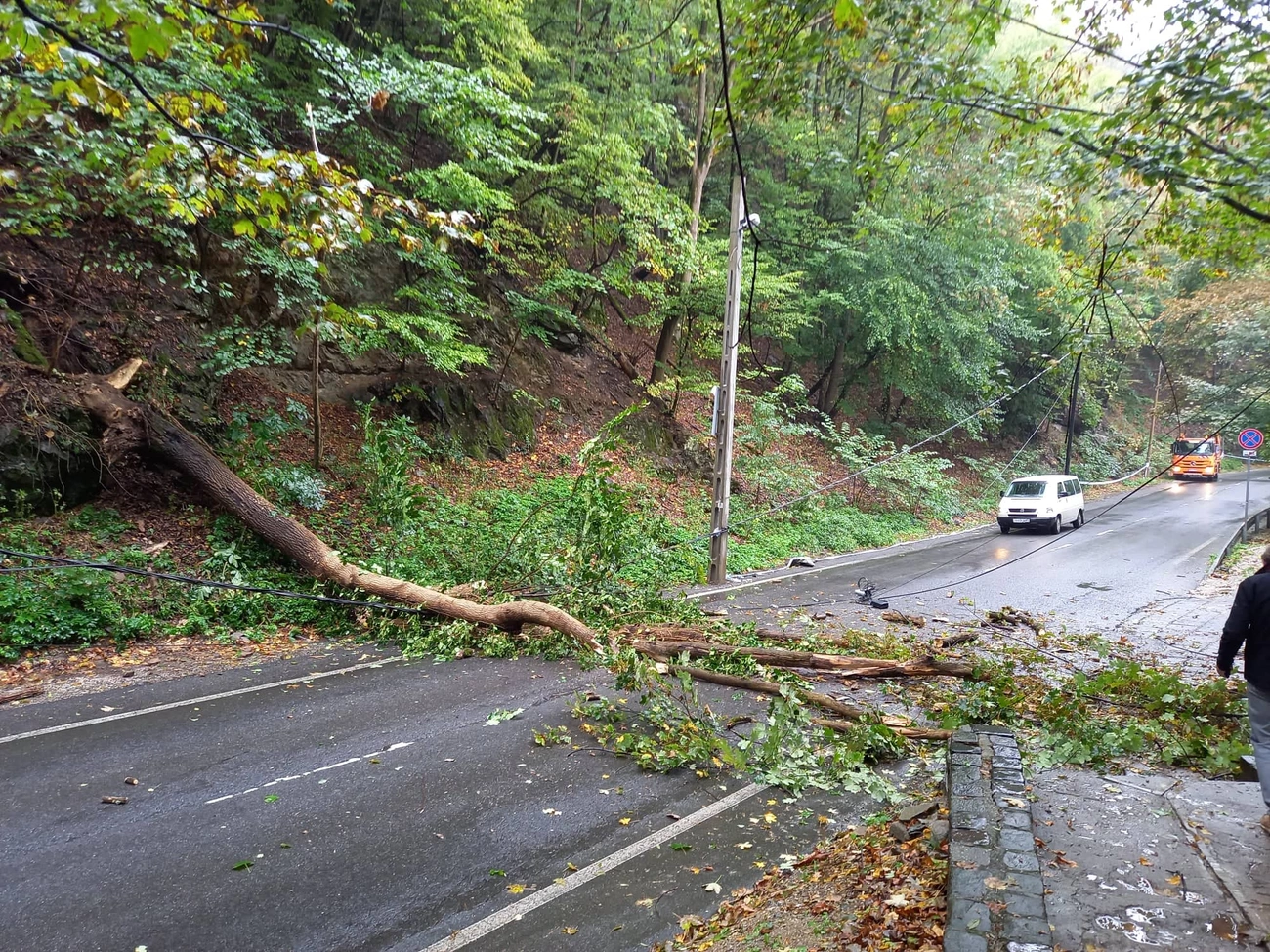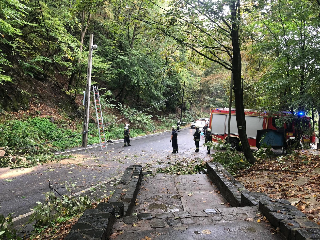 Az egri út mentén szemlátomást kimosta az eső a növény gyökérzetét, majd az a délelőtti órákban ki is dőlt az útra. Az autóforgalom szünetelt, teljes volt az útzár.