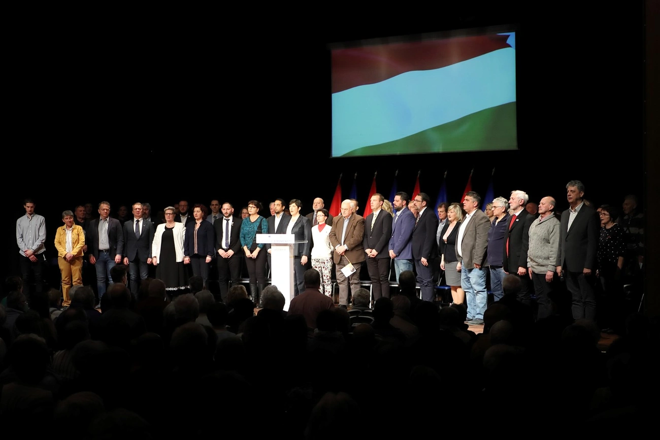 Mintegy negyedórás csúszással indult a rendezvény, annyi érdeklődő érkezett ugyanis a Művészetek Házába, hogy a szervezőknek végül már a színpadon is pótszékeket kellett elhelyezniük, így több tucatnyian a DK prominensei - országgyűlési és önkormányzati képviselők, az árnyékkormány több tagja - mellől, mögül hallgathatták meg a felszólalókat.