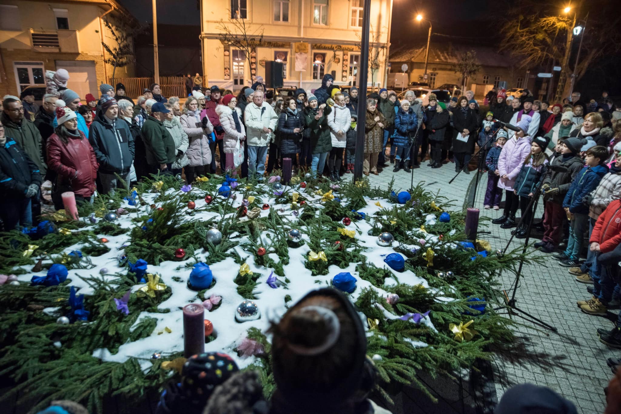 Az Avason ünnepi gyertyagyújtások a városközpontban elhelyezett adventi koszorúnál: