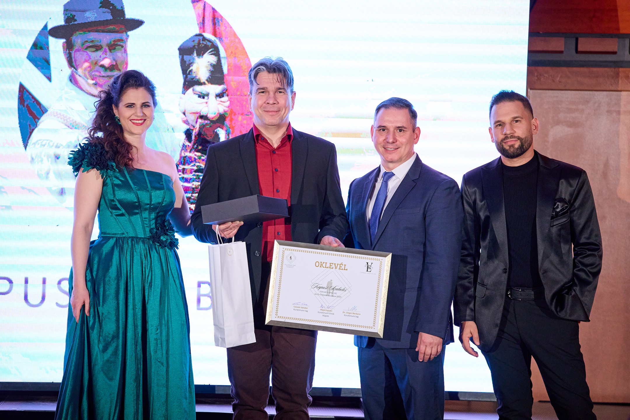 Kapusi Szabolcs miskolci előadóművész vehette át a Váradi Eszter-díjat „Az Év Előadóművésze 2025” kategóriában kiemelkedő szakmai és közösségi munkájáért az Egy Lépéssel Több – Hajós István Alapítvány ünnepélyes gálaestjén.