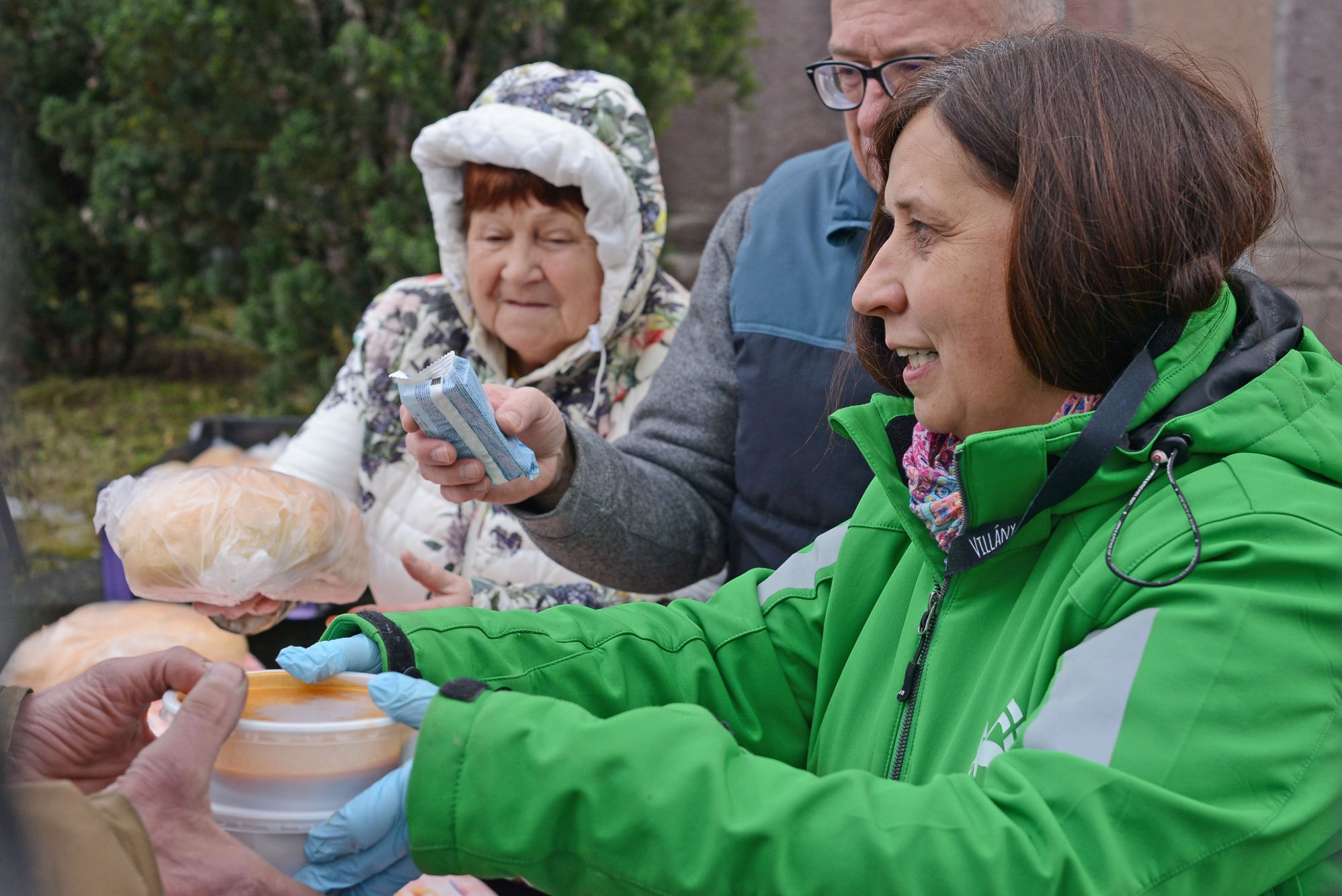 - Százötven adag meleg ételt készítettünk elő. Az összes hajléktalanszállót, családsegítőt kiértesítettük, hogy ebben az időpontban tartjuk az ételosztást. Már fél nyolc óra elkezdtük az előkészületeket és a krumplipucolást a belvárosi református gyülekezet tagjaival közösen. A helyben főzött paprikás krumplihoz friss kenyeret is hoztunk. Egy közeli pék az általunk adott lisztből önkéntesen sütött nekünk friss kenyereket – számolt be Bakos Zsuzsanna, az MRSZ szakmai vezetője.