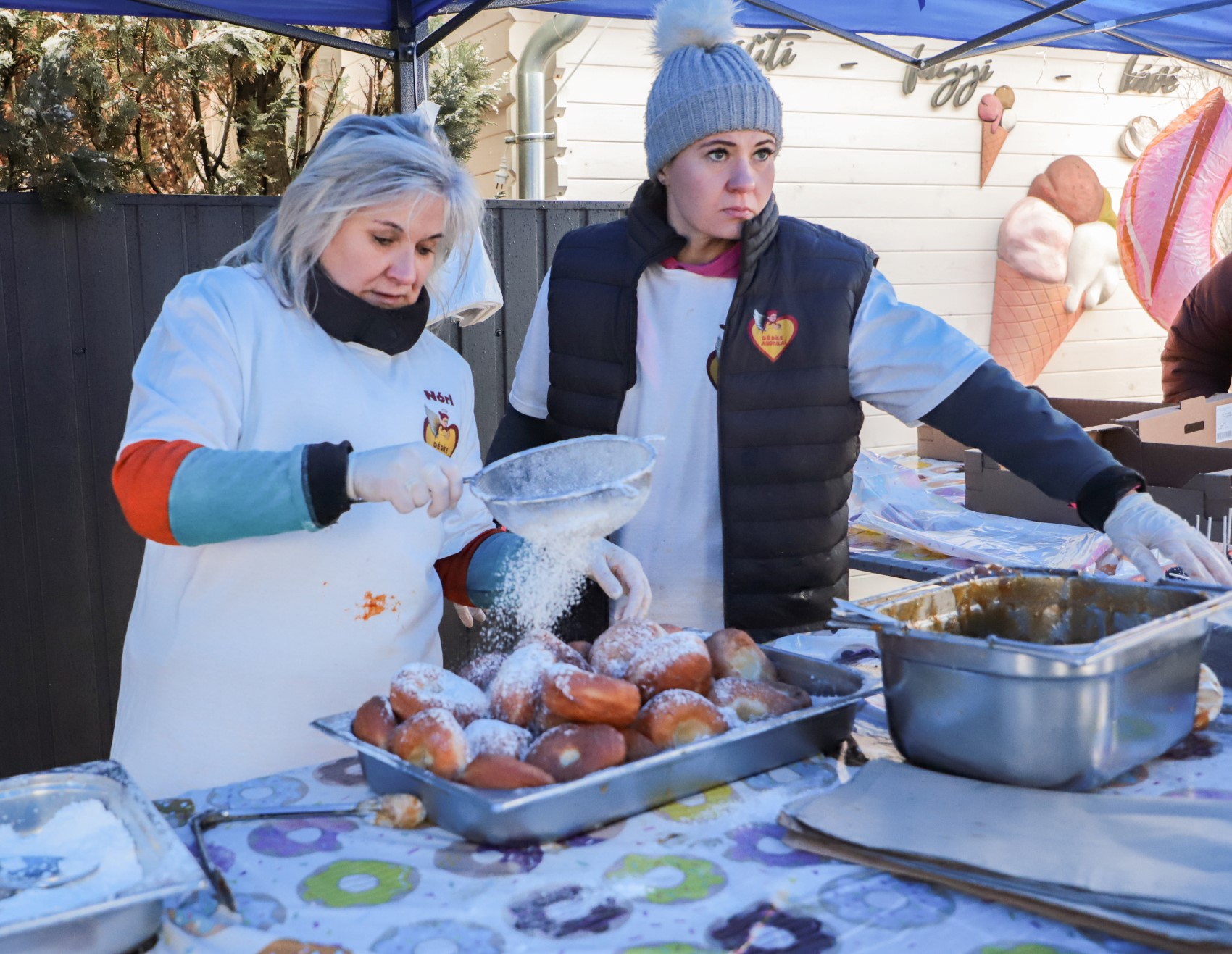 A hideg, havas idő ellenére sokan látogattak el a helyszínre, hogy fánkvásárlással támogassák a nemes célt.