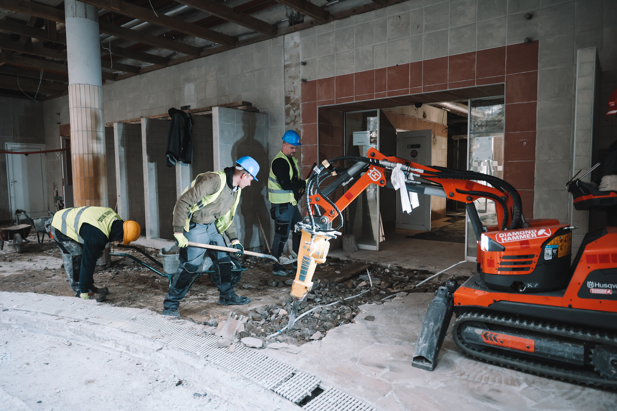 - A bontási munkátok nagy részén túl vagyunk. Ahogy látható, a medencecsarnokban a padló burkolatát bontják még a kollégák. Ami igazán fontos és látványos, az a tetőszerkezetnek az építése, ami ma kezdődik el, és várhatóan a jövő hét végére be is fejeződik. Ezzel párhozamosan zajlik a villanyszerelési munka a barlangjáratokban, ahol az erős és a gyenge áramú vezetékeknek a fektetése történik, és a fűtési hálózat is elkészül várhatóan a hét végére – ismertette.