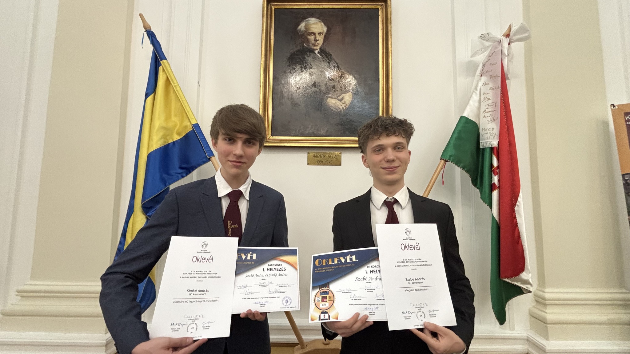 – Két kategóriában indultunk. A szolfézs versenyt Szabó András nyerte, a pároséneket ketten, emellett pedig különdíjak is születtek: Simkó András a legjobb kortárs lapról olvasásért, Szabó András pedig a legjobb dalelemzésért kapott elismerést – sorolta a tanárnő, aki maga is átvehette a kitüntetést a tehetséggondozás és versenyfelkészítés terén nyújtott kiemelkedő tanári munkájáért.