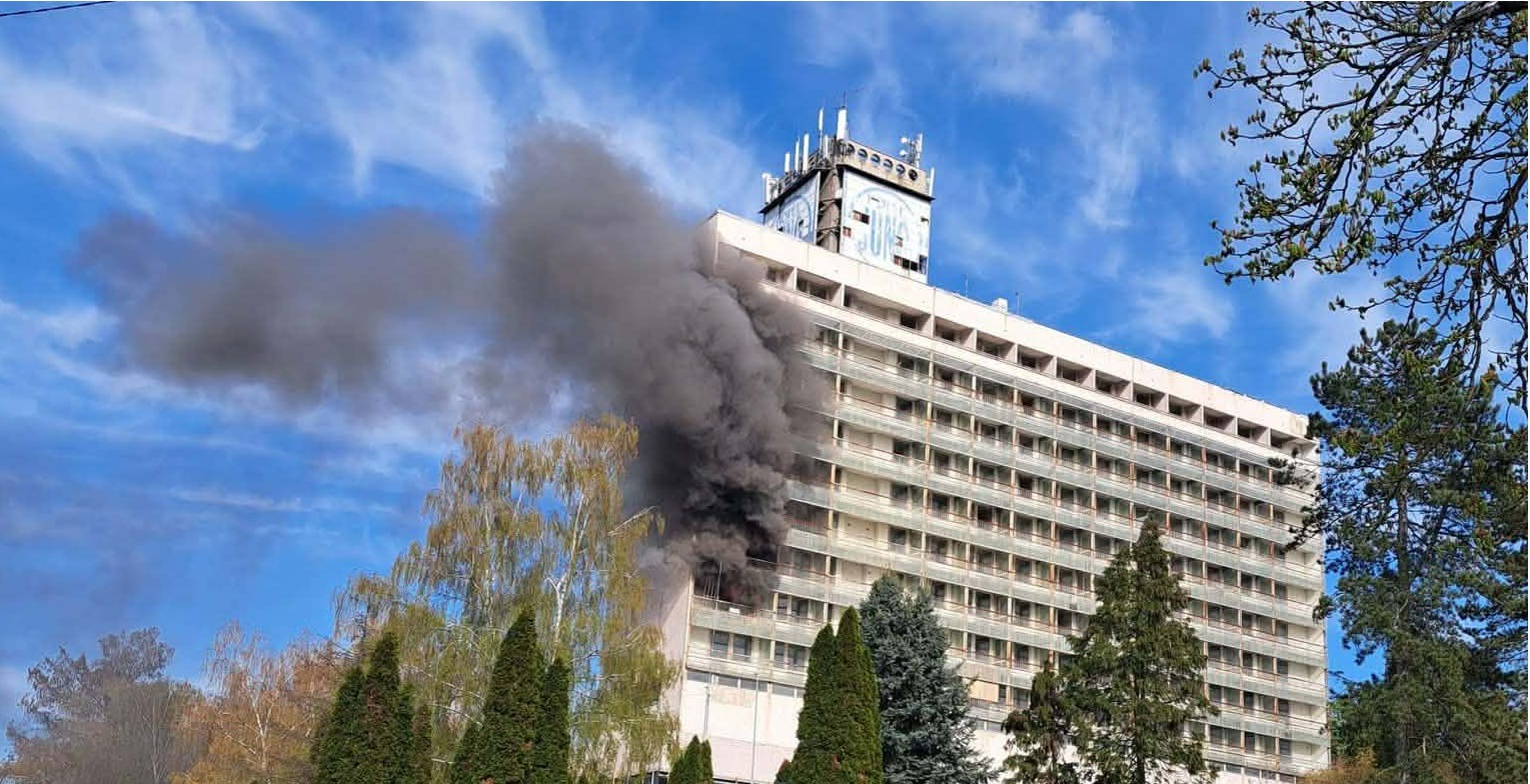 A tűz az évek óta üzemen kívül lévő szálló második emeletén keletkezett, egyelőre ismeretlen okból.