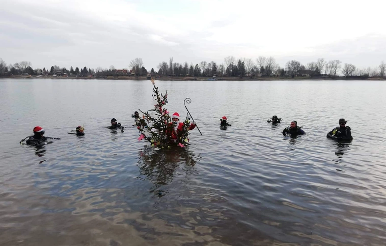 Búvárok állítottak karácsonyfát a víz alatt Mályiban