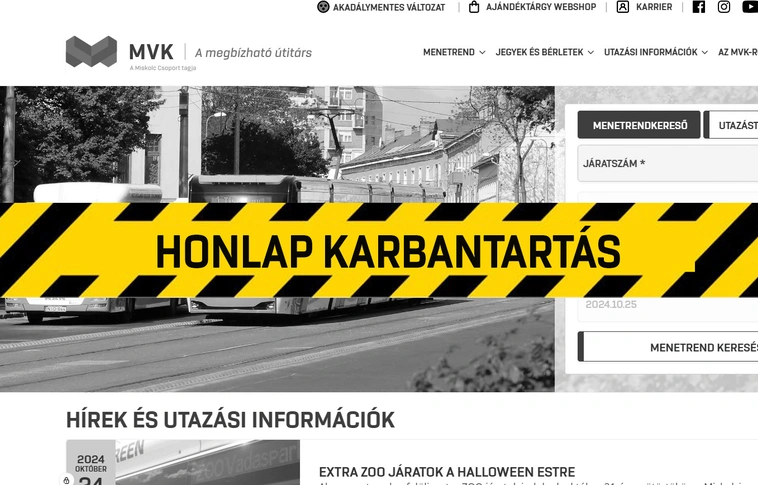 Péntek estétől szombat hajnalig nem lesz elérhető az MVK honlapja