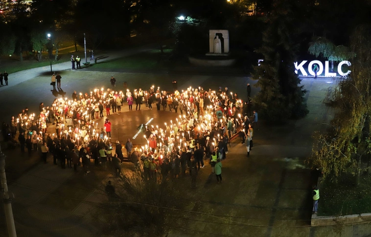 Fáklyás felvonulással tiltakoztak a pedagógusok Miskolcon is