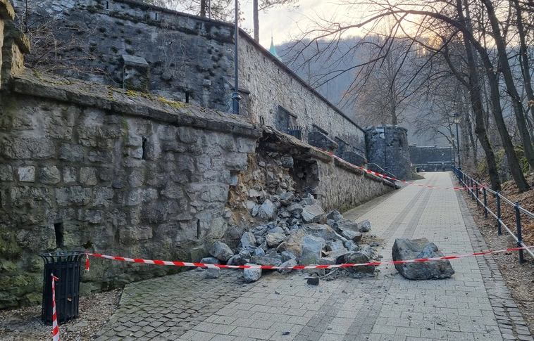 Az omlás helyszínét a katasztrófavédelem elkerítette, a helyreállítás ügyében a város már intézkedett.