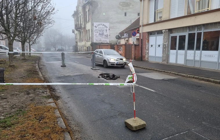 Beszakadt az aszfalt a Kis-Hunyadon, javítják, de terelni kell a forgalmat
