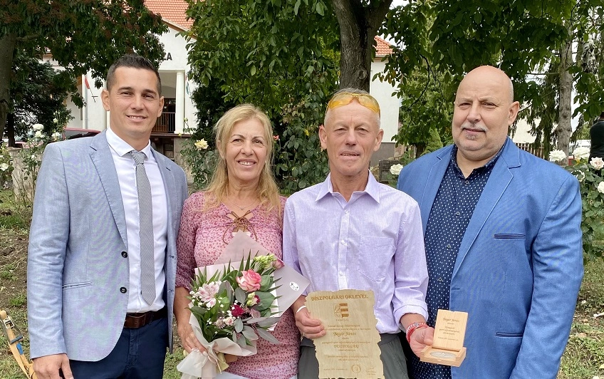 Nyitrai Péter, Fancsal polgármestere (balról), Bogár János, Varga Ildikó és Szűcs István a kitüntetés átadását követően. Fotó: Magánarchívum